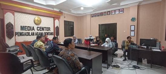 Bontang, Jum’at (22/03) Bertempat di Ruang Media Center Pengadilan Agama Bontang, PA Bontang laksanakan kegiatan Monev (Monitoring dan Evaluasi) Inovasi yang ada pada Pengadilan Agama Bontang. Adapun yang hadir dalam kegiatan tersebut yakni Ketua, Wakil Ketua, Hakim, serta seluruh pegawai yang menjadi penanggungjawab masing-masing inovasi.